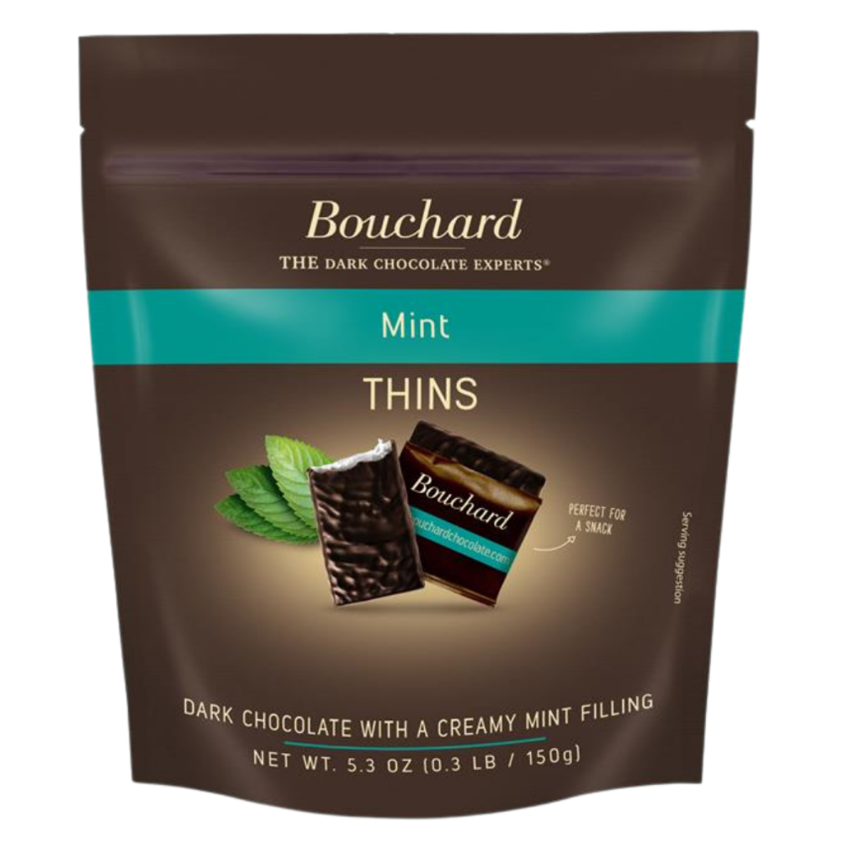 Indulge in the bold and utterly irresistible flavor of Bouchard's Mint Chocolate Thins. Crafted with the unparalleled expertise that defines Bouchard, these delectable thins are all about pure, unapologetic flavor. Each bite is a journey into the enchanting world of mint and chocolate, a combination that's nothing short of amazing. The luscious, rich taste will transport your taste buds to a realm of pure delight. Bouchard's Mint Chocolate Thins are a testament to the company's commitment to exquisite chocolate experiences, where flavor takes center stage.