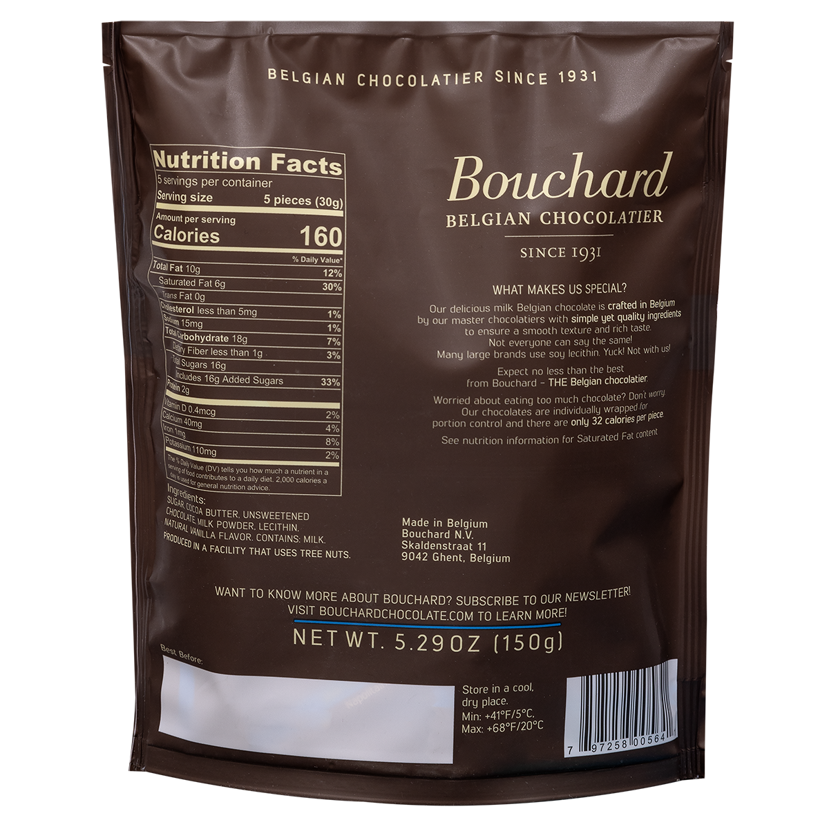 The chocolate flavor is intensely rich and allows you to feel the combination of the different carefully selected ingredients. Our Belgian Milk Chocolate is delicious, creamy and of premium quality.